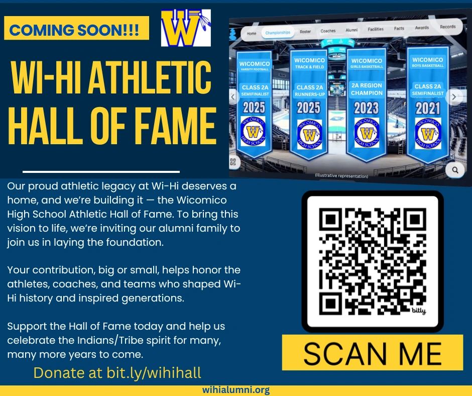 Donate using the link below, or mail a check to: Wi-Hi Alumni Association P.O. Box 3102, Salisbury, MD 21801 in the Memo write: “Hall of Fame”
